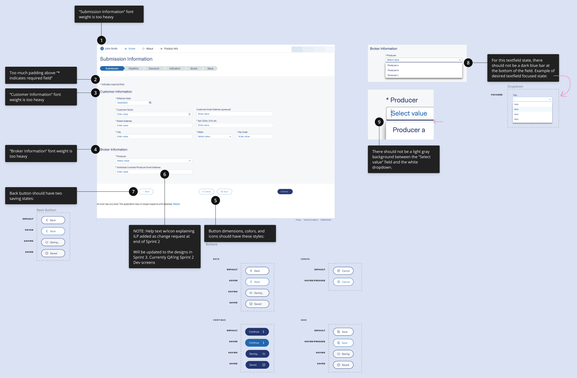 I delivered designs a sprint ahead of developers. After my wireframes were built, I reviewed screens within the production environment, performed design QA, and left feedback for developers. In design review sessions, I collaborated with the Exporter team to review and prioritize these updates.