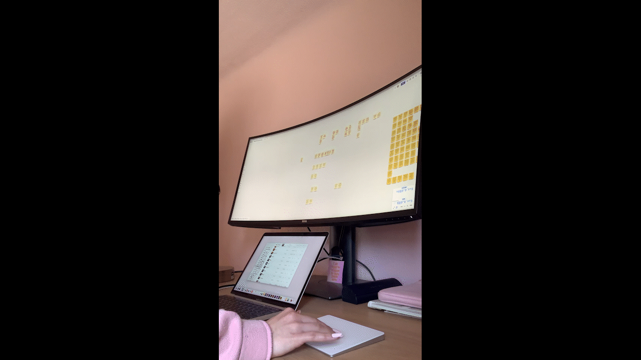 I recorded interview data on digital sticky notes and color-coded them by participant.