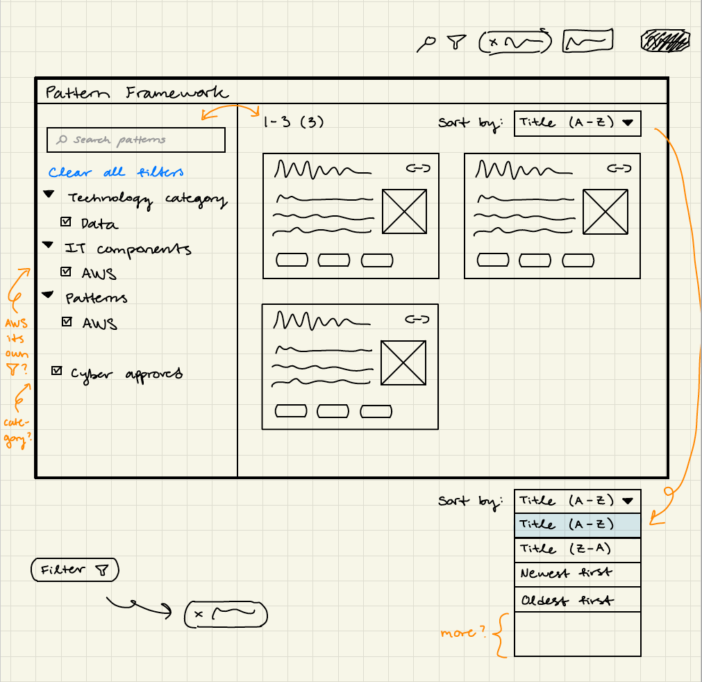 I also wanted to map out the relationships between patterns and components, as well as the categories of patterns. These would become filter categories.