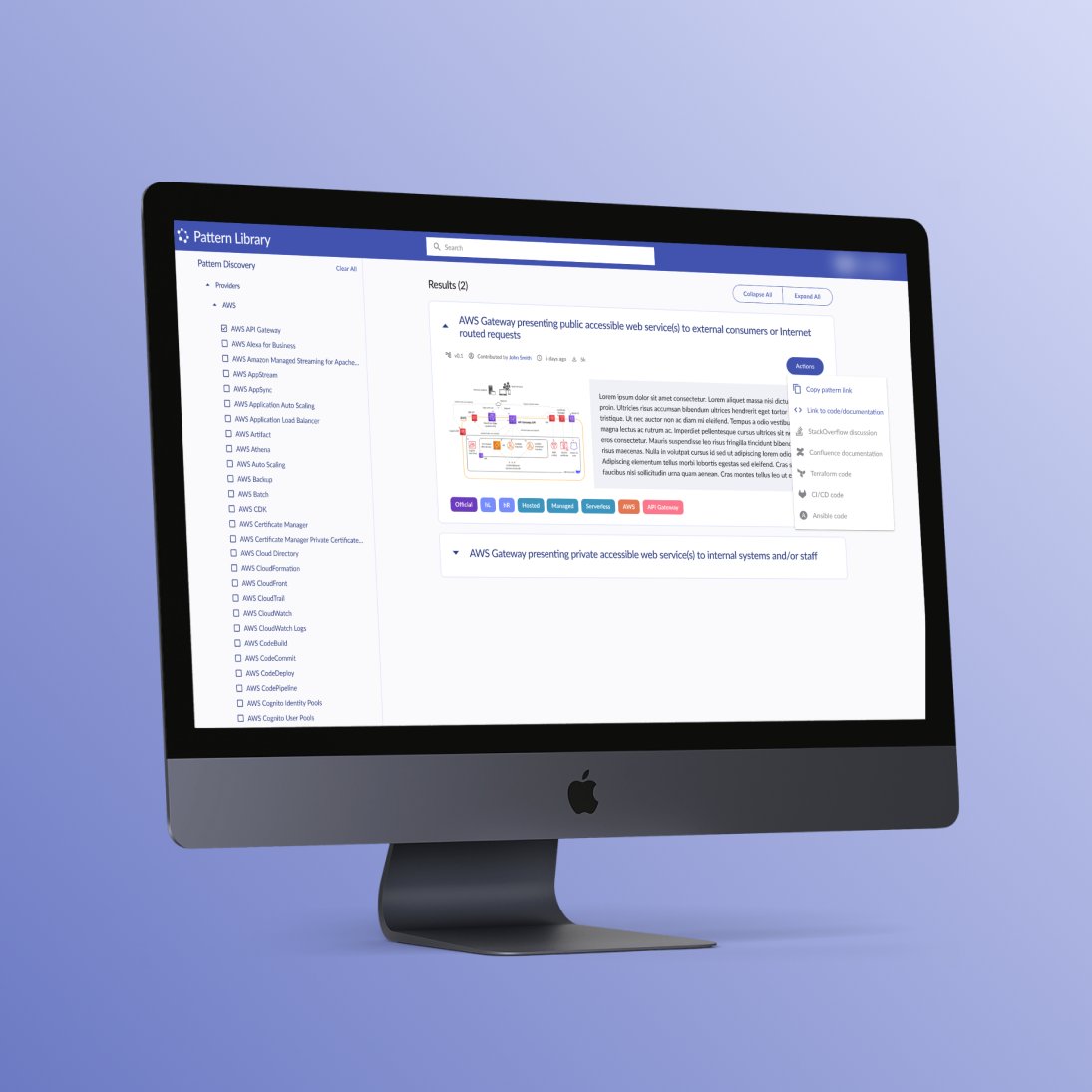 In this project, I worked with a large financial company to design their Cloud Pattern Library (CPL). A pattern library is a repository, similar to GitHub. It is a giant internal product cataloguing every component that developers use. The CPL is a metadata hub and user interface designed to speed up development and to help automate digital governance. Resources within the CPL allow developers and architects to deliver applications faster. The CPL provides a searchable catalogue of cloud products including approved designs, CI/CD pipelines, and Infrastructure as Code (IaC), which can be accessed by everyone within the organization.